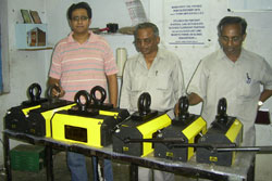 Mr. Dhiruj Sarda (extreme left) along with Mr. Laxman Roa and Mr. Satyanarayan from BHEL-HYD after final inspection of the lifters.