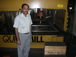Mr. Siddharth Swarup, Paharpur Cooling Towers, in front of their new Quick Mill CNC Machining Center using EPM Chucks to clamp their jobs.